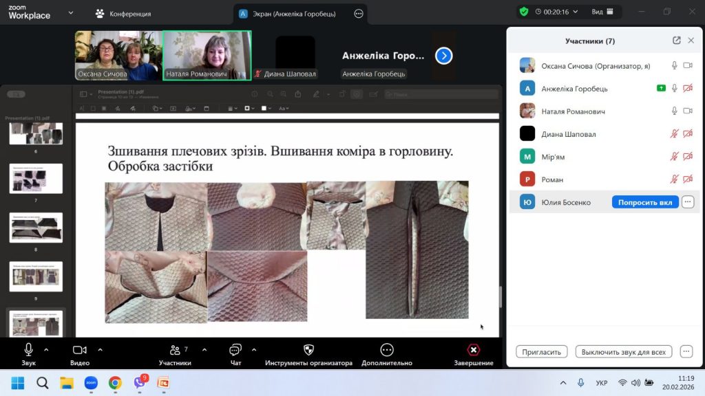Відповідно до програми навчання студенти мали виготовити швейні вироби верхнього асортименту одягу, а саме: куртку без підкладки та куртку на утеплювачі. Усі завдання були виконані в повному обсязі та на високому професійному рівні.
